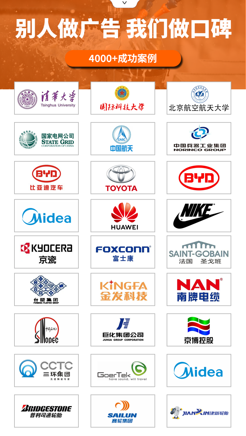 多年來(lái)公司已成功服務(wù)國(guó)內(nèi)外眾多中高端客戶,如:京瓷、比亞迪、美的、金發(fā)科技、歌爾聲學(xué)、潮州三環(huán)、中國(guó)科學(xué)院、清華大學(xué)、上海大學(xué)、國(guó)防科技大學(xué)、華南理工等企業(yè),利拿為他們提供了值得信賴的設(shè)備與服務(wù),建立了良好的合作關(guān)系。
